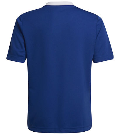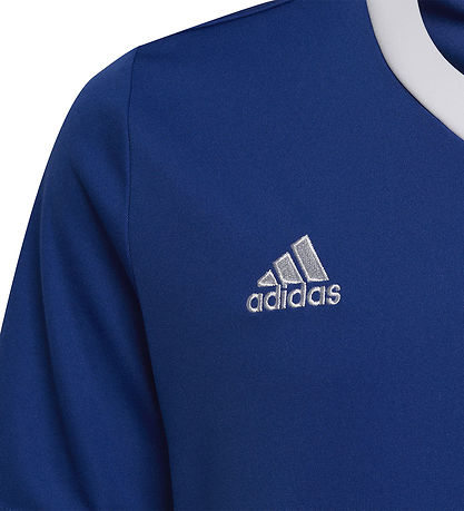 Elegant adidas Performance t-shirt in a deep royal blue with a white contrast color at the neck. The T-shirt has the well-known adidas logo embroidered in white on the chest, which adds a recognizable detail.