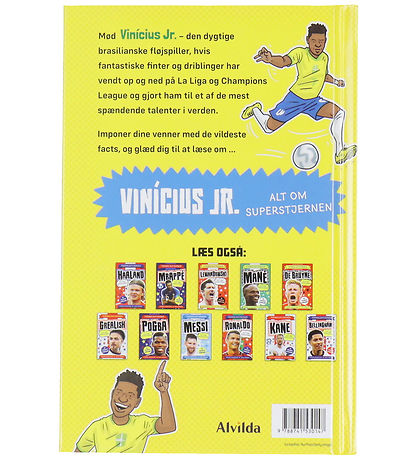 Interesting Alvilda book in a vibrant yellow with an eye-catching image of Vinícius Jr on the cover. The Alvilda book contains all the exciting details about the football star and his greatest moments.