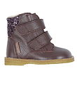Cute Angulus prewalker boots in dark purple leather, with purple glitter at the heels.