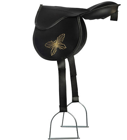 Smart by ASTRUP saddle for the brand's handsome horses. The saddle is black, imitation leather with gold logo and metal braces.