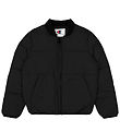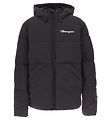 Cool Champion puffer jacket in plain black with a little logo print in black on the left side.