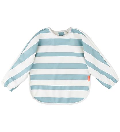 The Done by Deer bib has long sleeves with narrow elastic edges, and it closes at the neck with two push buttons. At the bottom there is a waste pocket that collects food crumbs. The Bib has a PU coating that makes it waterproof and easy to wipe off.