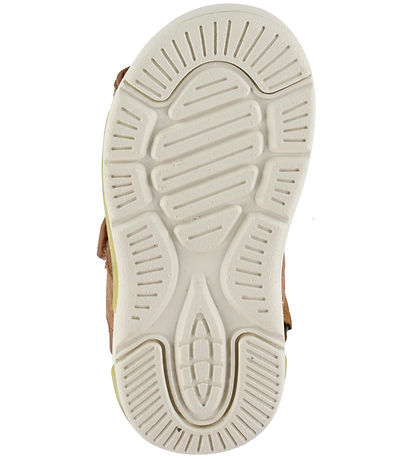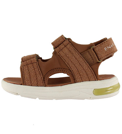 Smart En Fant sandals in brown with suede details and white outsoles. The Sandals have built-in flashing lights in the outsoles, which are activated when you walk. The light is not rechargeable or replaceable.