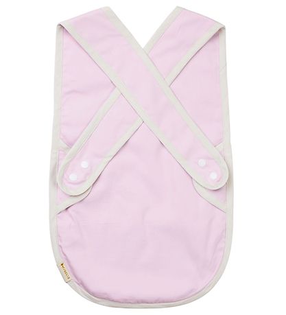 The Fabelab bib is a long model with a practical front pocket. The Bib has two straps that crosses each other at the back, and the straps are closed on both sides with buttons with two settings.