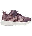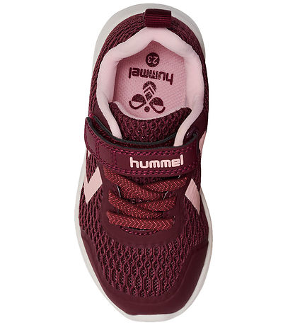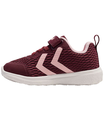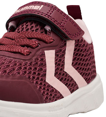 Cool Hummel shoes in plum-colored mesh with pink logos on the sides and white outsoles.
