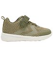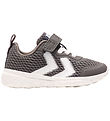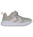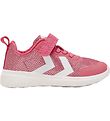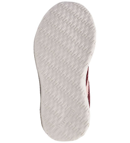 The Hummel shoes have elastic laces over the instep and are closed at the top with a Velcro strap. At the back there is a practical strap that makes it easy to put the shoes on. Inside there is pink textile and removable insoles. The shoes have lightweight Aerotech outsoles with a practical pattern under the bottom, which ensures good footing.