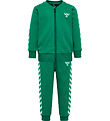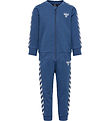 The Hummel sweatshirt has long sleeves and a round neckline with a narrow ribbed edge, where it can be opens on the left side with practical push buttons. In the arm and waist openings there are wide ribbed edges edges. The sweatpants have a good elastic edge at the waist, with adjustable drawstring in white at the front. In the leg openings there are wide ribbed edges.