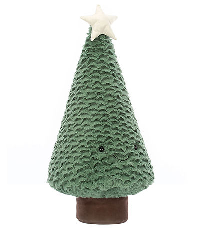 Beautiful Jellycat soft toy shaped like a green Christmas tree with a gold star on top and a smiling face on one side.