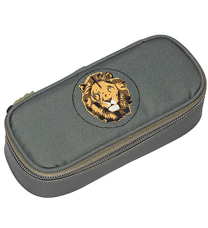 Nice Jeune Premier pencil case in dark green with a print of a lion.