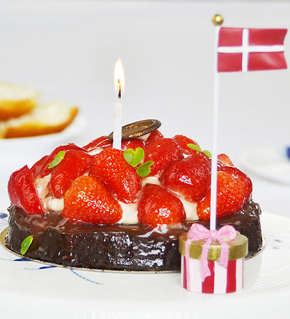 Nice Kids by Friis table figurine with the Danish flag at the top, and a foot shaped like a gift in pink and gold.
