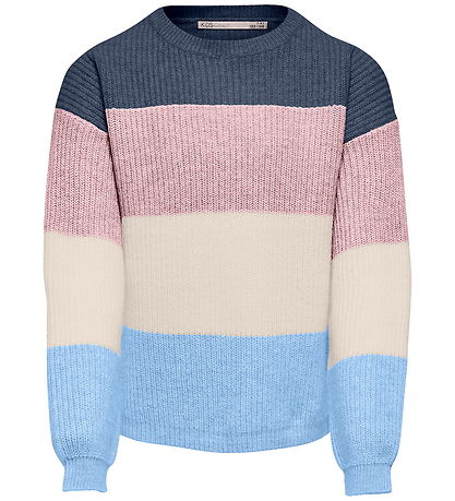 Beautiful Kids Only blouse with wide horizontal stripes in the colours navy, pink, cream and light blue.