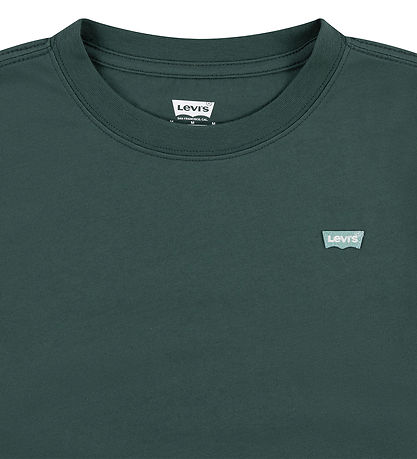 Smart Levis blouse in green, and at the front on the left side there is a light green brand shaped like a logo with the name "Levis" in white inside.