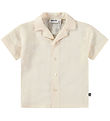 The Lil' Atelier shirt has short sleeves and a classic round Chinese collar in the neck opening. At the front there is a continuous button closure, and on both sides there is a decorative chest pocket. It is made in a light and tightly woven cotton quality.