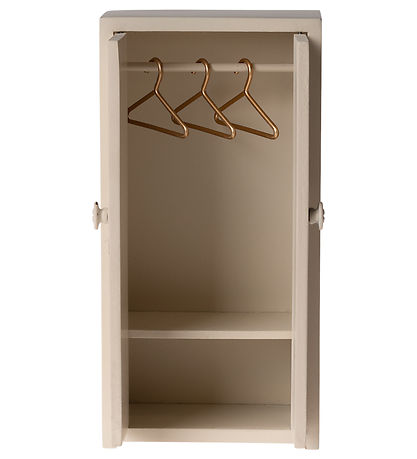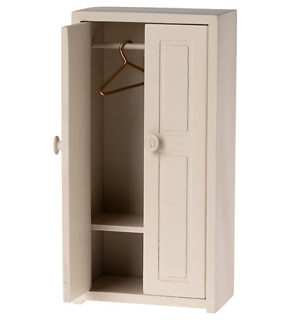 The Maileg cupboard helps the little family organize their wardrobe. The cabinet is supplied with 3 golden hangers.