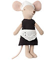 Charming Maileg rabbit dressed in a light beige dress with a beautiful floral print.