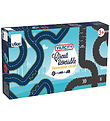 The Metal Machines car track features a double loop and an impressive yellow dinosaur that challenges the racing car. Metal Machines sets a new standard for exciting car play with this colorful and action-packed track.