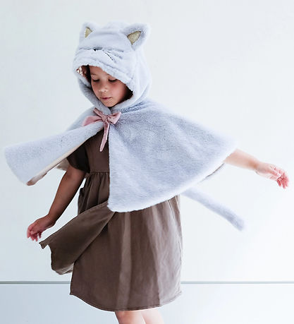 The Mimi & Lula cape closes at the front with a simple push-botton. The cape's tail has filling and metal so it can be shaped as desired. The cape is perfect for Shrovetide or as a fun set of everyday play.