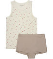 Charming Minymo underwear with a top in pink decorated with fine cherry prints. The Minymo top is sleeveless, making it comfortable on warm days. Perfect for adding a playful touch.