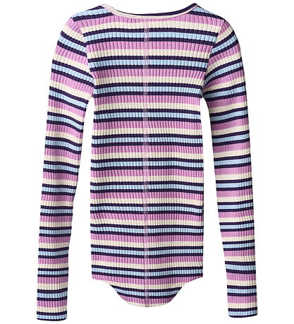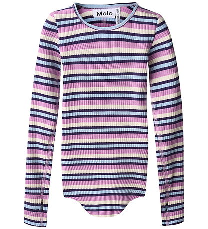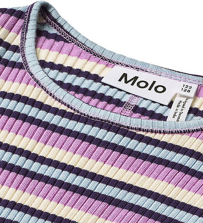 Attractive Molo blouse with long sleeves and a stylish, striped pattern. The Blouse appears in shades of purple, pink, blue and white, which creates a harmonious expression. The round neckline completes the classic design, while the soft, ribbed structure provides a good fit. The Molo blouse offers a versatile style for the wardrobe.