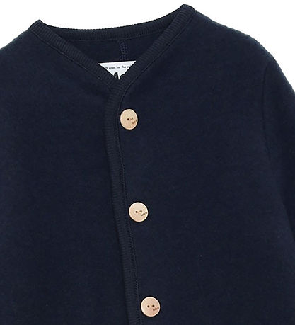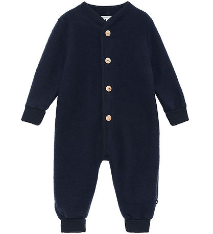 Nice Molo fleece suit in navy blue, with continuous in wood buttons along the front.