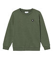 The Name It sweatshirt has long sleeves and a round neckline with a narrow ribbing. The Sweatshirt has an embroidered logo on the left chest and a fine v-stitching in extension of the neckline. The arm and waist openings of the sweatshirt have wide ribbed edges and the sweatshirt has a nice, soft, brushed inside.