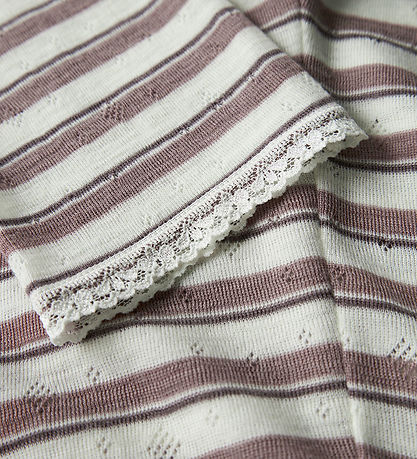 Beautiful Name It leggings in an elegant combination of pink and white in classic stripes. The Name It leggings have reinforcement at the knees, which ensures good durability. The Leggings are made with lovely merino wool.