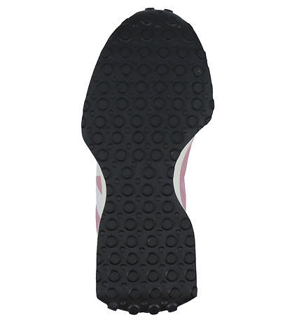The New Balance shoes are tightened over the instep with shoelaces. Inside there is pink textile and removable insoles. The shoes' outsoles go up over the heel and toes. The outsoles are lightweight and flexible with round rubber studs under the bottom, which ensure a good foothold.