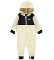 The Nike jumpsuit has a fixed hood and long sleeves with narrow, black edges and long legs with wide ribbed edges. The Jumpsuit can be opens all the way up from the neck opening and down the left leg with a zipper with chin guard and internal wind pole. In front, there are cheat pockets with a zipper.