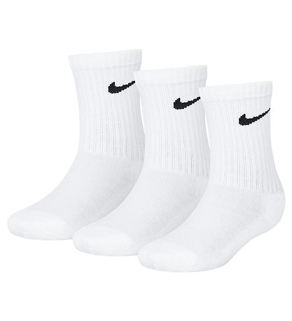 Nice Nike socks sold in a 3-Pack white with a black logo on both sides of the shaft.