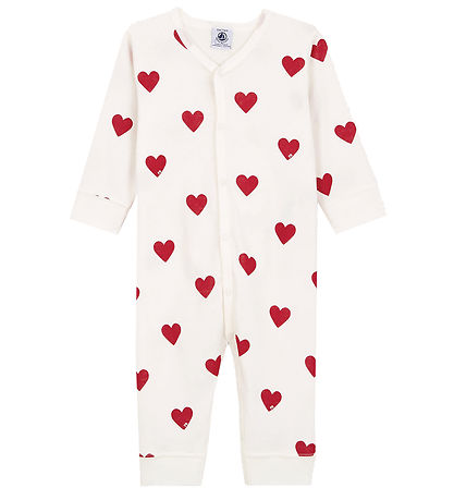 Beautiful Petit Bateau nightsuit in white with an all-over-print of large, red hearts.