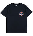 The T-shirt has a distinctive decorative print on the front and back with an abstract pattern in shades of purple, green and blue. The Quiksilver t-shirt has a round neckline with a ribbed edge that gives a simple and stylish look, while the light structure completes the design.