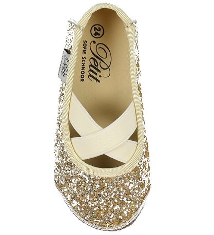 Fine Petit by Sofie Schnoor slippers in gold glitter and shiny gold leather.