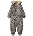 The Wheat snowsuit has a removable hood that is Fast with push buttons around the ribbed collar, and there is a wide ribbed edge at the face opening. The sleeves have wide, fleece-lined elastic edges, and the trouser legs have elastic edges with rubber on the inside, and there are removable, adjustable rubber straps to put under the boots.