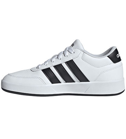 Stylish adidas Performance shoes in white imitation leather with black logo stripes on the sides of the shoe, giving a classic look. At the heel there is a black set at the top, with "adidas" printed in white.