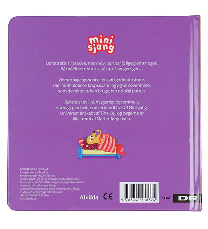 The Alvilda book consists of thick pages with fun illustrations and a good story. Børste the hedgehog is going to sleep and says goodnight, but before he goes to sleep there are several things he wants to do. It is a sweet bedtime story that helps little ones fall asleep well. Børste is a curious hedgehog, known from DR Minisjang.