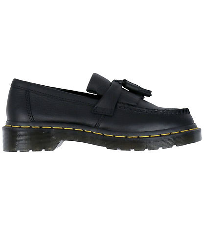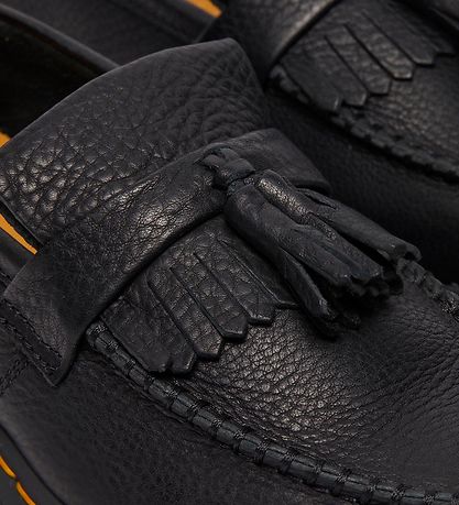 Stylish Dr. Martens loafers in black leather with the classic yellow stitching along the outsoles. The loafers have fringes at the instep and a nice pendant with fringe details.