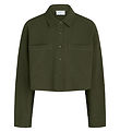 The Grunt shirt has long sleeves with cuffs at the wrists and it has an open chest pocket on the left side. In the neck opening there is a classic collar, and on the front the shirt opens with buttons.