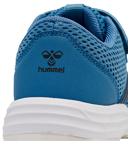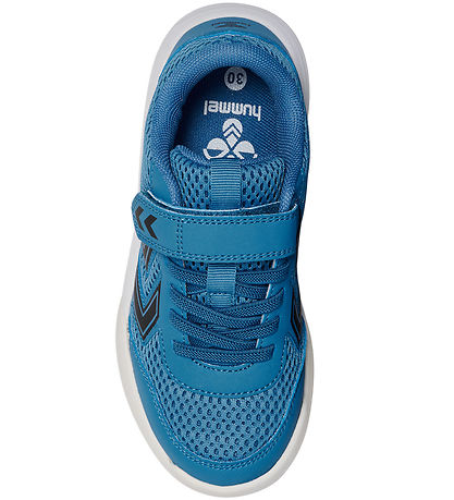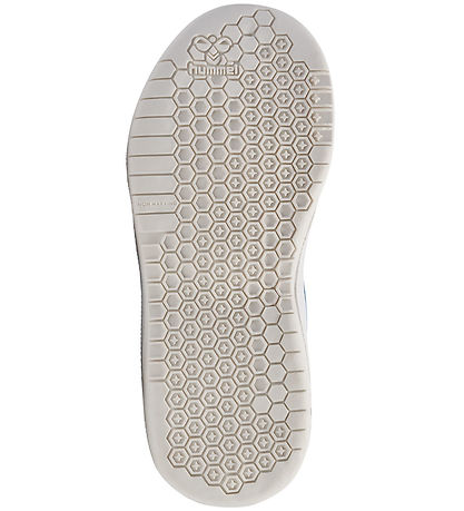 The Hummel indoor shoes have elastic over the instep and close at the top with a Velcro strap. Inside there is blue textile and removable insoles. The shoes have lightweight and flexible outsoles that do not rub off on the surface. Under the bottom there is a smart pattern that ensures a good foothold.