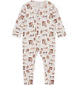 Smart Hust and Claire nightsuit in dusty green with an allover print of ostriches and small stars in shades of green. The Nightsuit has long sleeves and closes at the front with a hidden zipper. The Nightsuit has long arms and long legs with wide ribbed edges and the option to fold over for closed feet. It is made of a soft quality of wool and bamboo viscose.