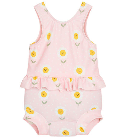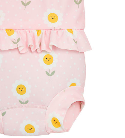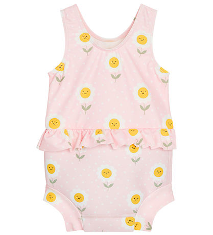 Fine Hust and Claire swimsuit w. swim diaper in a light rose colour with happy floral prints and small white dots.