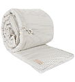 Smart Konges Sløjd bed bumper in off white with narrow, blue stripes. The Konges Sløjd bed bumper is Fast to the inside of the cradle, cot or playpen with drawstring. It has soft polyester padding that protects the kid from hard edges and pull.
