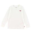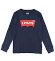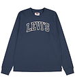 Stylish Levis blouse with long sleeves in a dark blue shade. This blouse has a classic design with a prominent Levis logo on the front, which adds a modern look. With a round neckline, the Levis blouse is both simple and timeless.