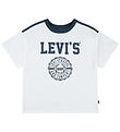 Beautiful t-shirt from Levis in a dark blue shade. The T-shirt is constructed with a simple, ribbed structure that gives a discreet texture to the fabric. The Levis logo is placed centrally on the chest, and it is decorated with small rhinestone.