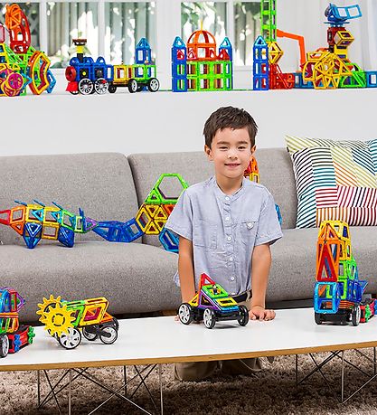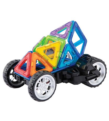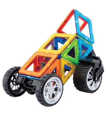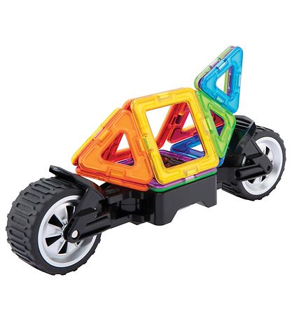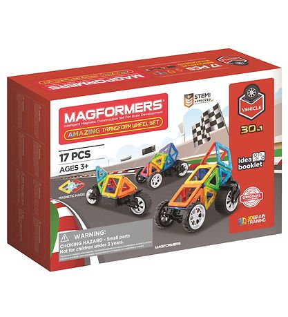 The Magformers amazing transform wheel set has 17 magnetic parts, including one with two wheels for making motorcycles and one with two wheels so you can make race cars that can be put together in every conceivable way. The Magformers amazing transform wheel set helps to develop the child's creative thinking and motor skills.