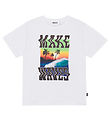 The Molo T-shirt has short sleeves and a narrow ribbed hem at the neckline. It has two small slits at the bottom of each side. The T-shirt closes at the left shoulder with two press studs.