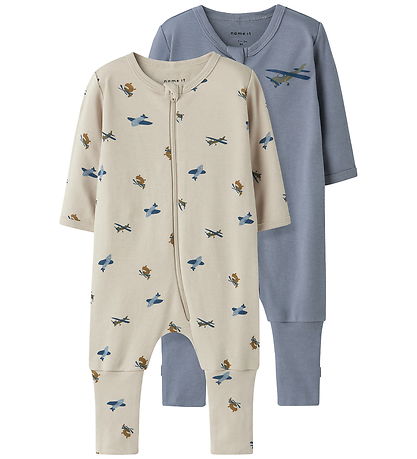 The Nightsuits close at the front with a zipper with chin guard and internal wind pole. The Nightsuits have a round neckline, long sleeves and long legs, with the option of folding over to closed the feet.
