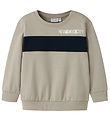 The Name It sweatshirt has a round neckline with a narrow ribbed hem. It has long sleeves with wide ribbed edges at the sleeve and waist opening, which provides a good fit. Inside there is soft, brushed cotton.