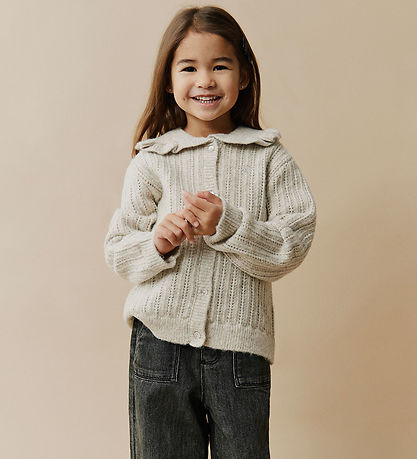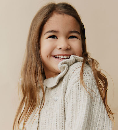 The Sofie Schnoor cardigan has long sleeves and a round neckline with a nice round collar. On the front it has a continuous button closure with buttons in a mother-of-pearl look. In the arm and waist opening there are practical ribbed edges, which give a nice and timeless fit.