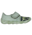 Fine Superfit slippers in light grey and pink with a print of a fantasy animal on the top of the foot. The slippers close with a wide Velcro strap, for easy and quick adjustment. The slippers have a flexible and non-slip bottom in blue.