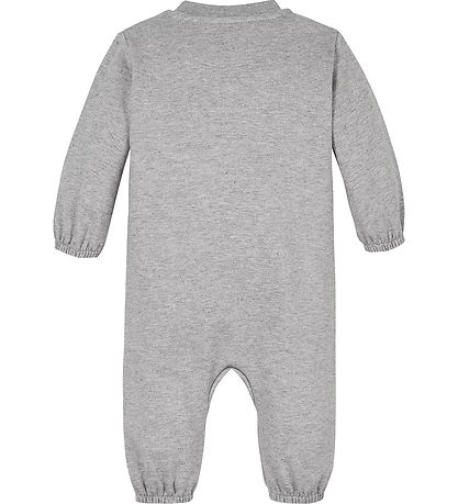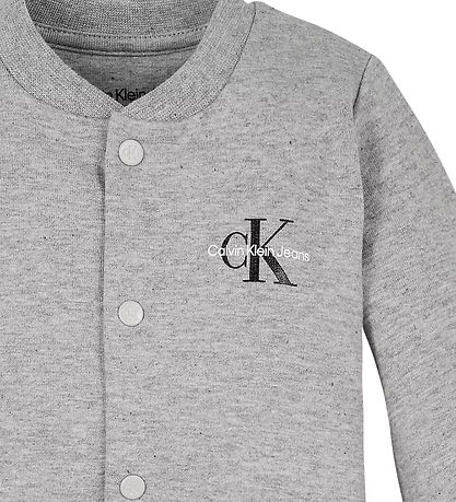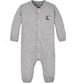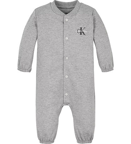 Beautiful Calvin Klein jumpsuit in grey melange with a discreet logo print on the chest in black and white.